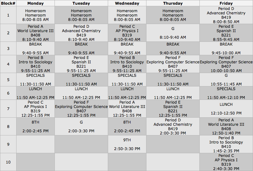 My 2014-2015 School Class Schedule - Jin Seong Kim